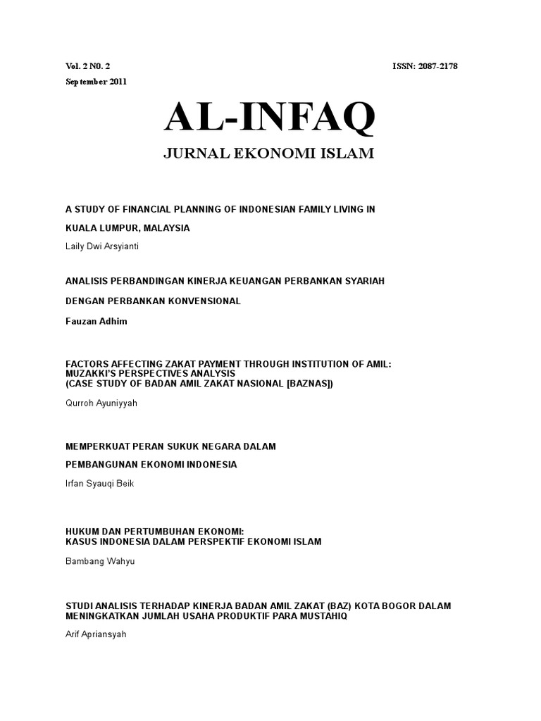 Jurnal Ekonomi Islam Al Infaq Vol 2 No 2 September 2011 Goal