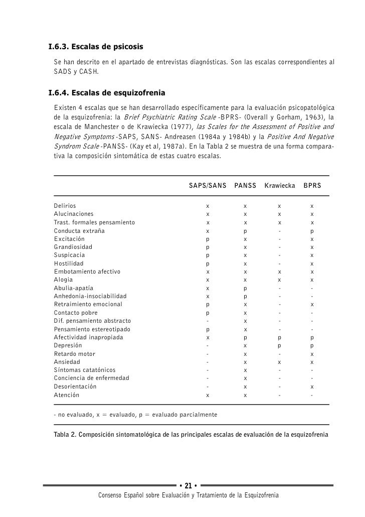 Escalas De Evaluacion De La Esquizofrenia Valoracion De La