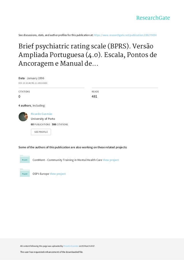 Esquizofrenia Escala Breve De Avaliao Psiquitrica Bprs 2013