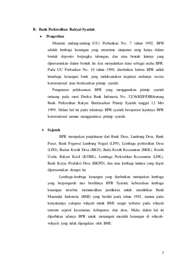 Makalah Bprs Bank Perkreditan Rakyat Syariah Sejarah Berdiri