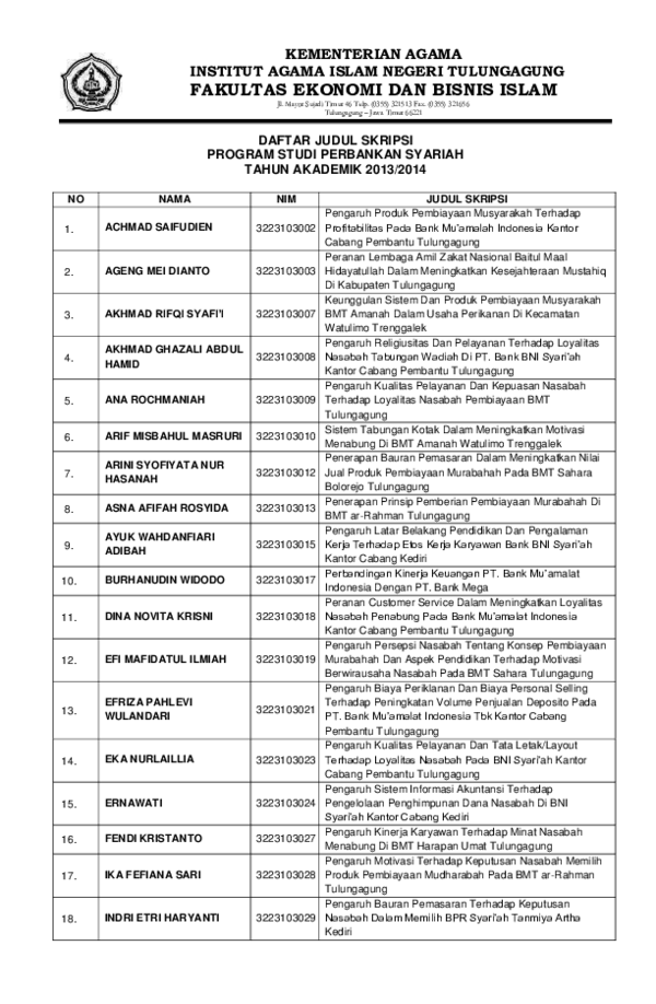 Daftar Judul Proposal Skripsi Yang Disetujui Febi Iain No Nama